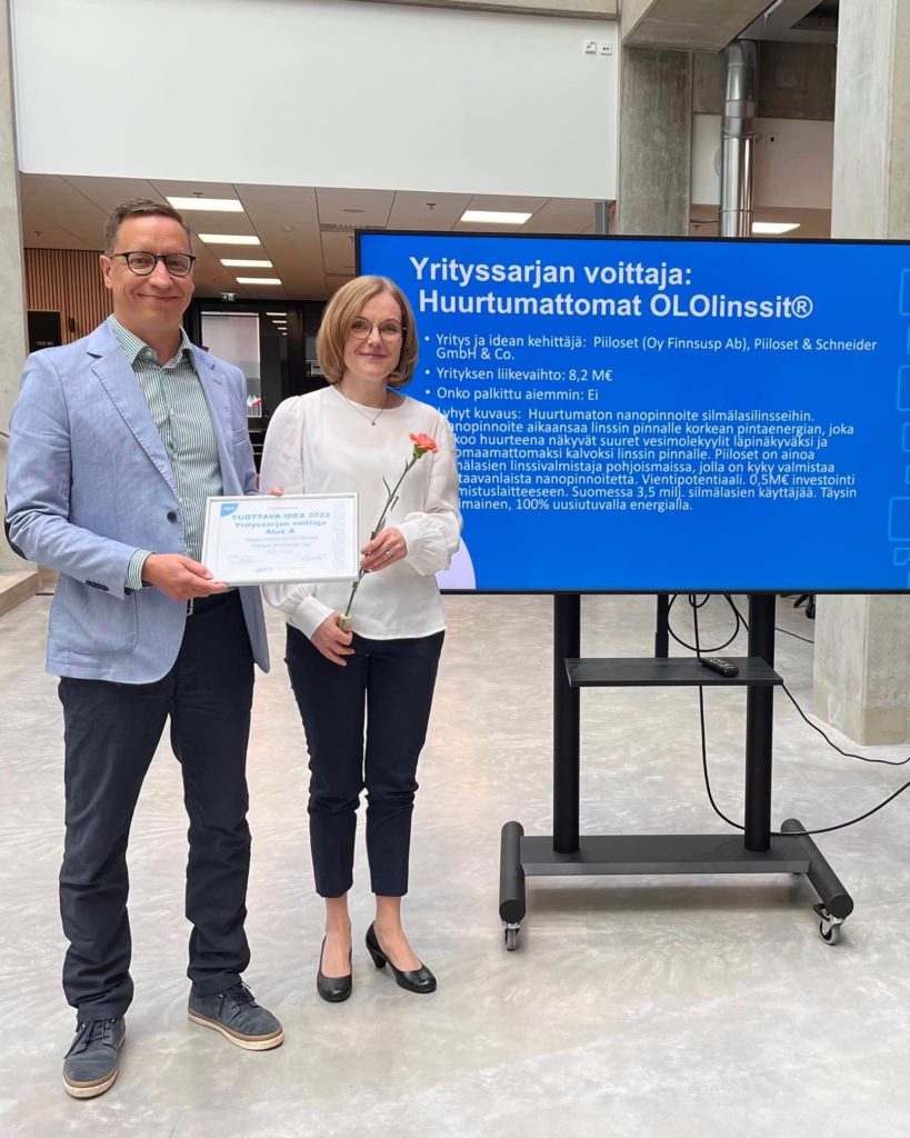 Piilosetin Huurtumattomat silmälasilinssit Tuottava Idea 2022 -aluekilpailun voittoon